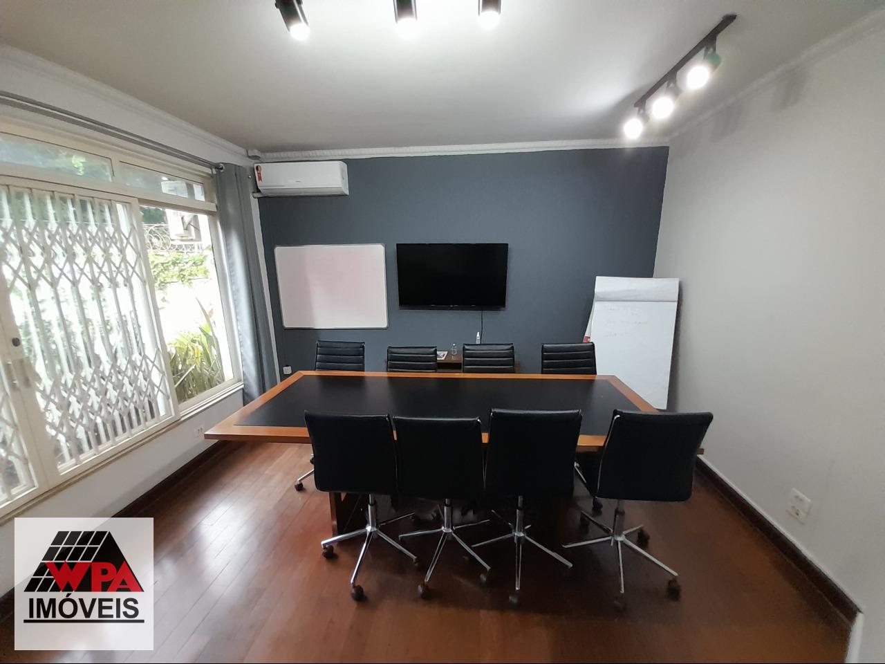 Casa comercial ampla com 9 salas, 4 banheiros sociais, lavabo, cozinha com armários, área de serviço com banheiro, despensa, churrasqueira, vagas de garagem para 2 veículos cobertas.