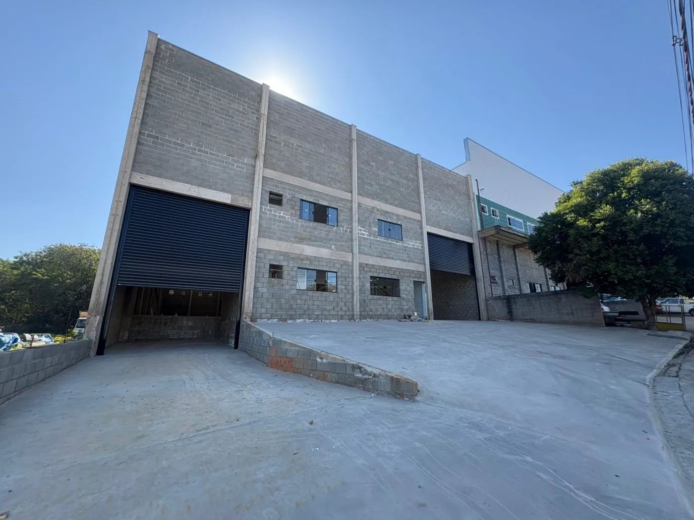 O galpão possui 1 entrada em nível com portão eletrônico, 1 entrada em doca com portão eletrônico, 8 metros de pé direito, recepção, 6 banheiros, vestiário, área administrativa e 6 vagas para estacionamento.