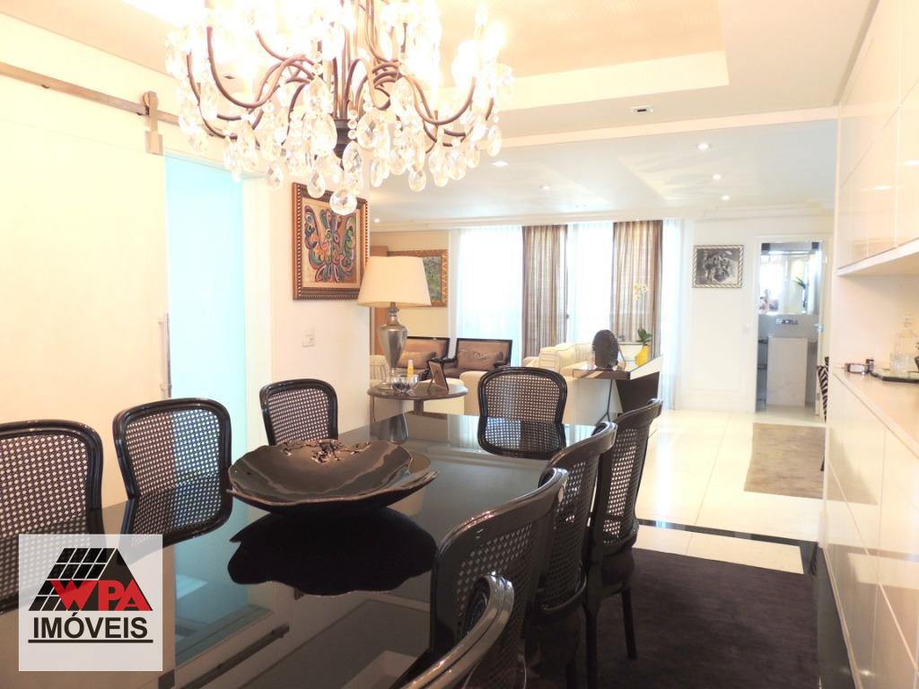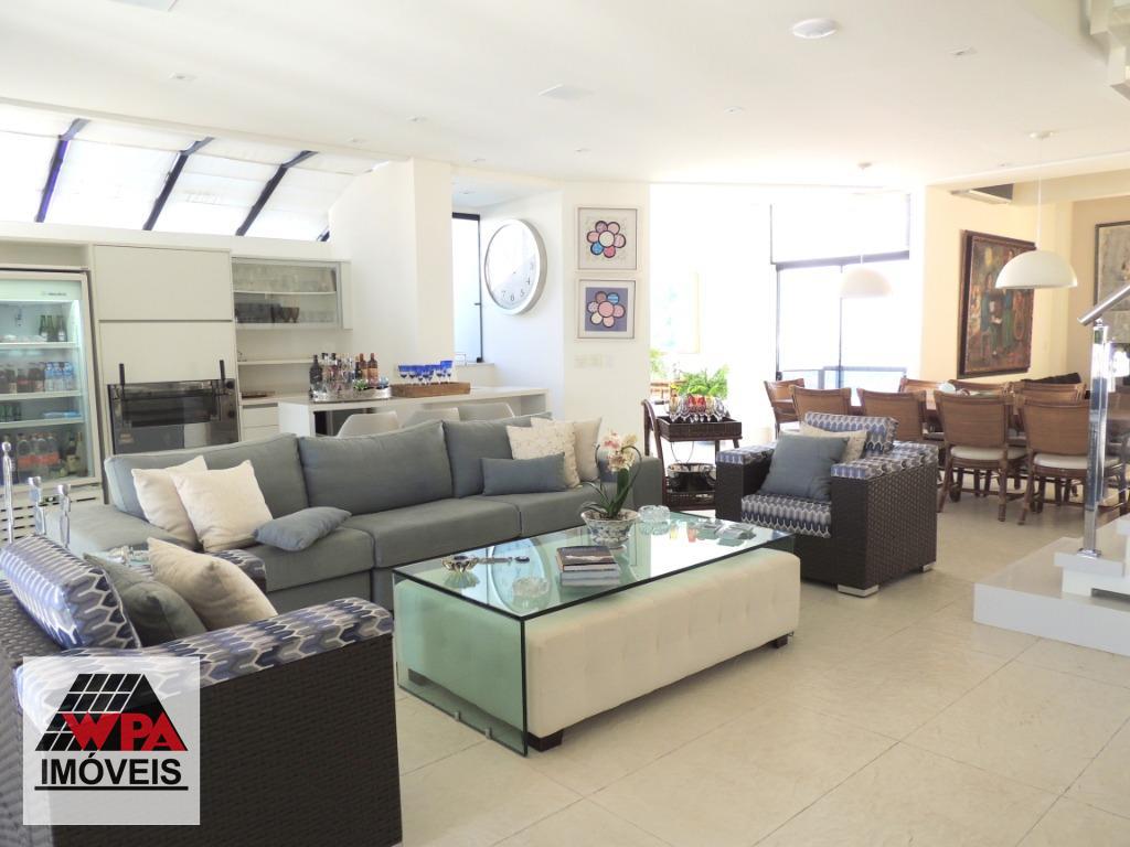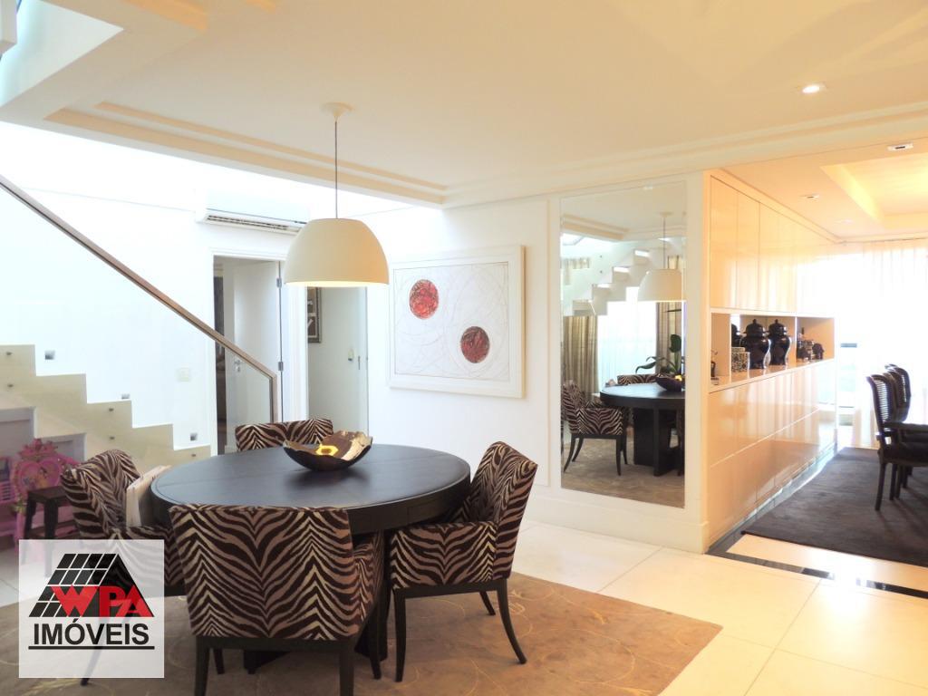 Cobertura 324m² na região central com 3 pavimentos, primeiro pavimento possui 3 suítes de fino acabamento com armários planejados, ar-condicionado e sacada, salas 3 ambientes, cozinha planejada com fogão embutido e coifa, despensa, lavabo, área de serviço com armário, dormitório e banheiro; segundo pavimento com lindo espaço gourmet com piscina, varanda, banheiro social e sala 2 ambientes; terceiro pavimento com ampla sala 2 ambientes, 2 vagas de garagem cobertas, prédio com portaria 24hrs, elevador panorâmico, salão de festas, piscina e academia. Estuda financiamento e permuta.