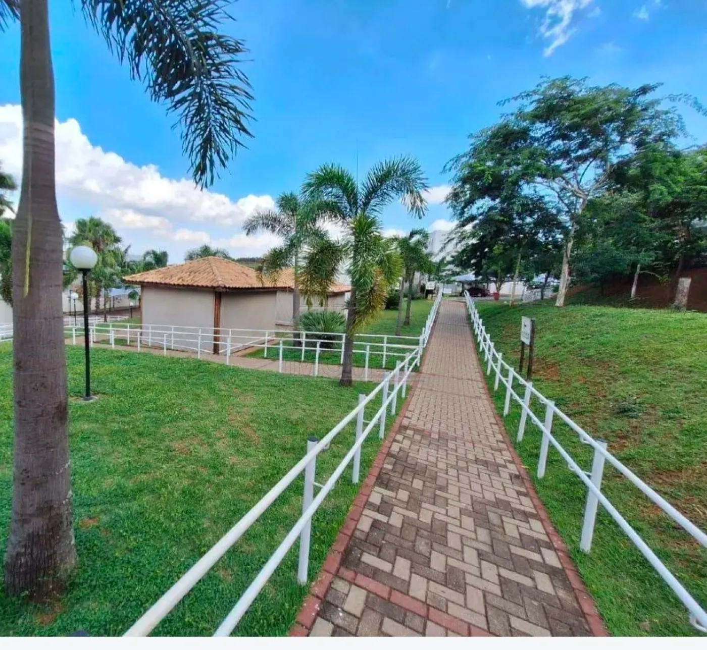 O Condomínio oferece portaria 24hs, playground, salão festas, quadra esportiva, mini mercado e poço artesiano.