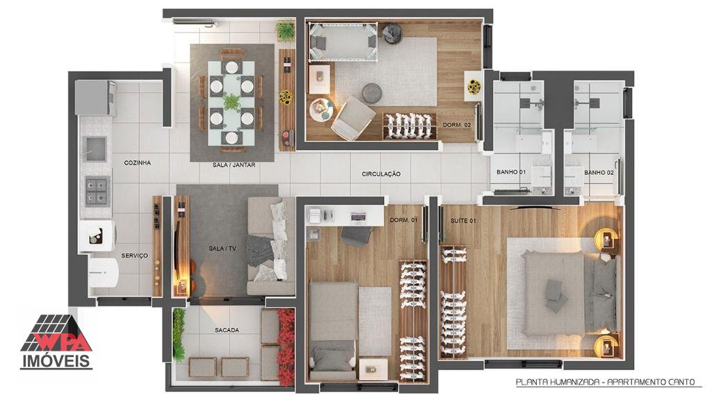 Lançamento - Morada do Porto Residêncial.Apartamento residencial 68,29m² com 3 dormitórios, sendo uma suite, sala 2 ambientes com sacada, cozinha, lavanderia, banheiro social e 1 vaga de garagem descoberta. Condomínio com piscina, salão de festas, quiosques e quadras poliesportivas. Aceita financiamento com FGTS.**Fotos do decorado, unidades `originais` à venda serão entregues com piso cerâmico e azulejo nas áreas molhadas, demais ambientes porcelanato fosco. OBS. Os valores podem sofrer alterações sem aviso prévio.