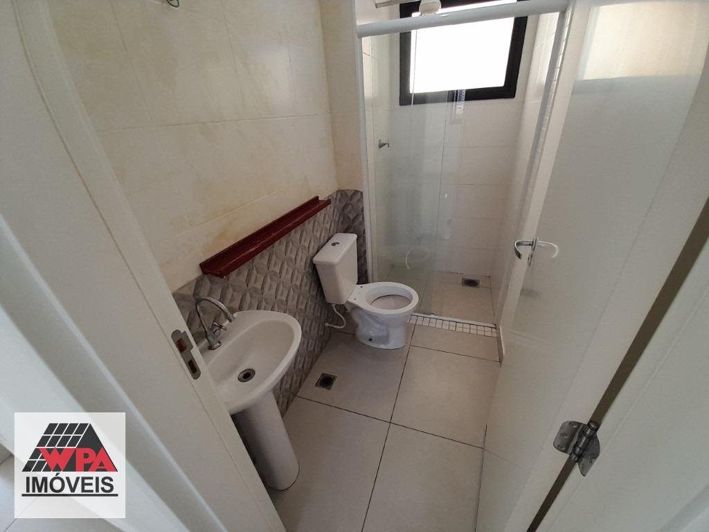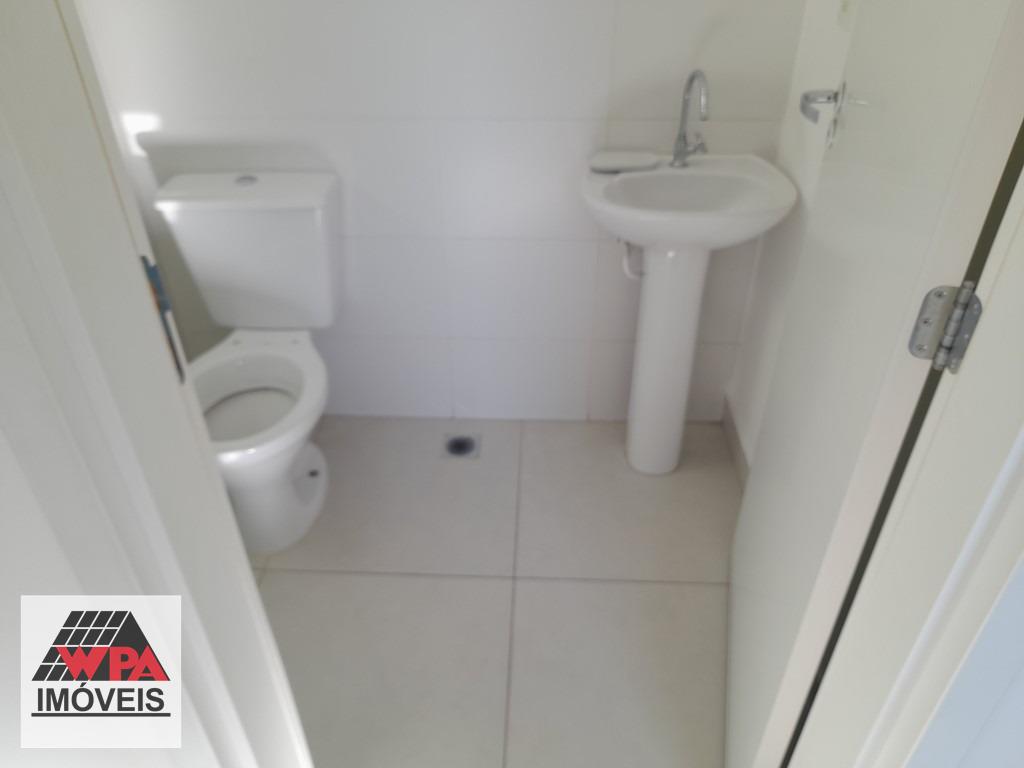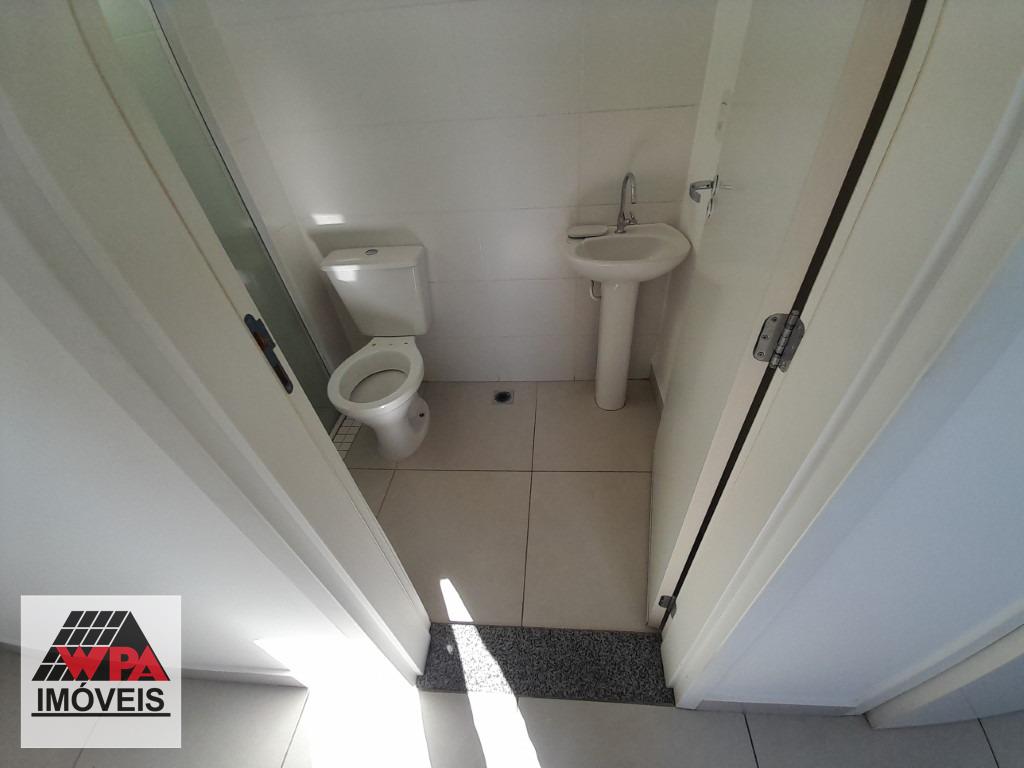 O condomínio oferece área de lazer completa com elevador, salão de festas com churrasqueira, playground, piscina e academia.