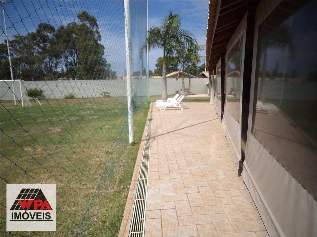 Belíssima Chácara em Condomínio fechado c/ 3.200m². Possui ampla área de churrasqueira c/ vestiários, banheiros, mini-campo, canil, casa pré fabricada p/ caseiro, toda murada e com gramado. Trata-se de 2 lotes.