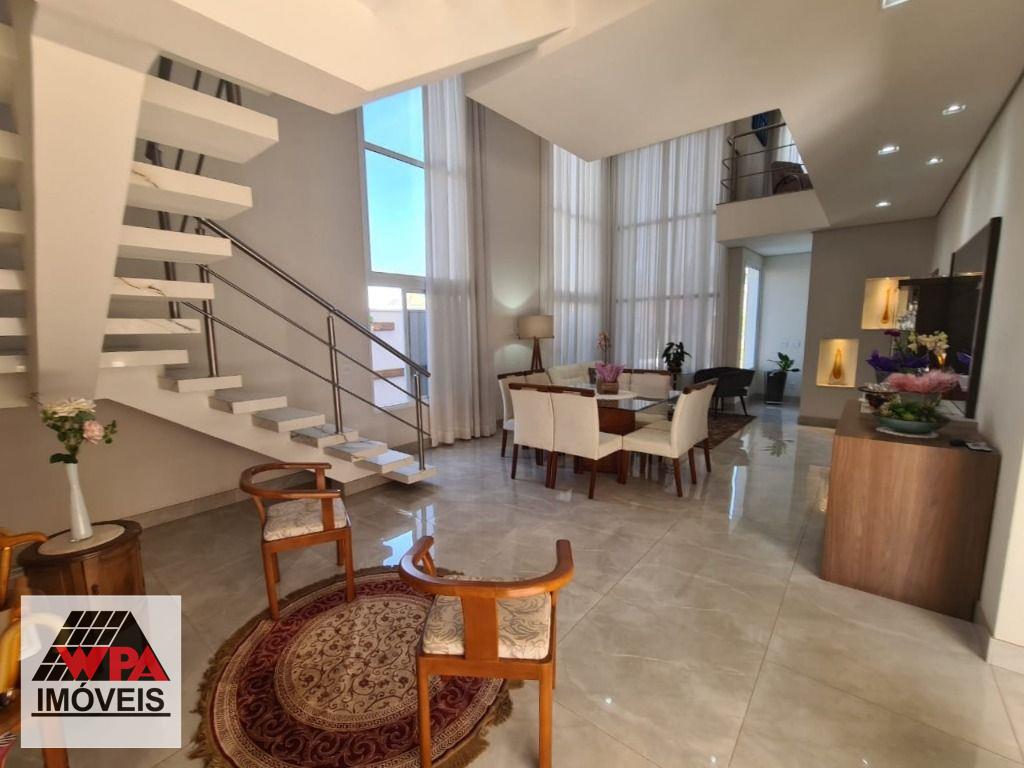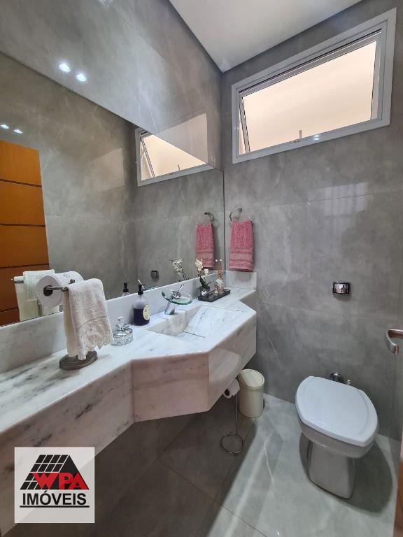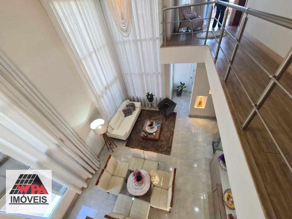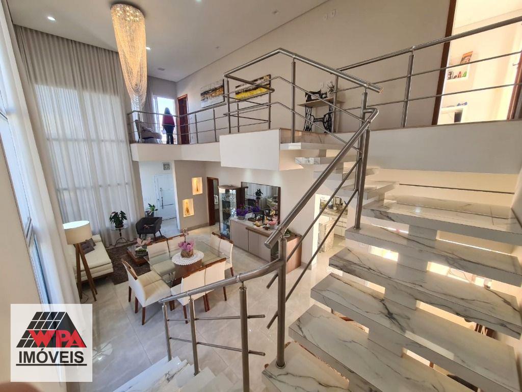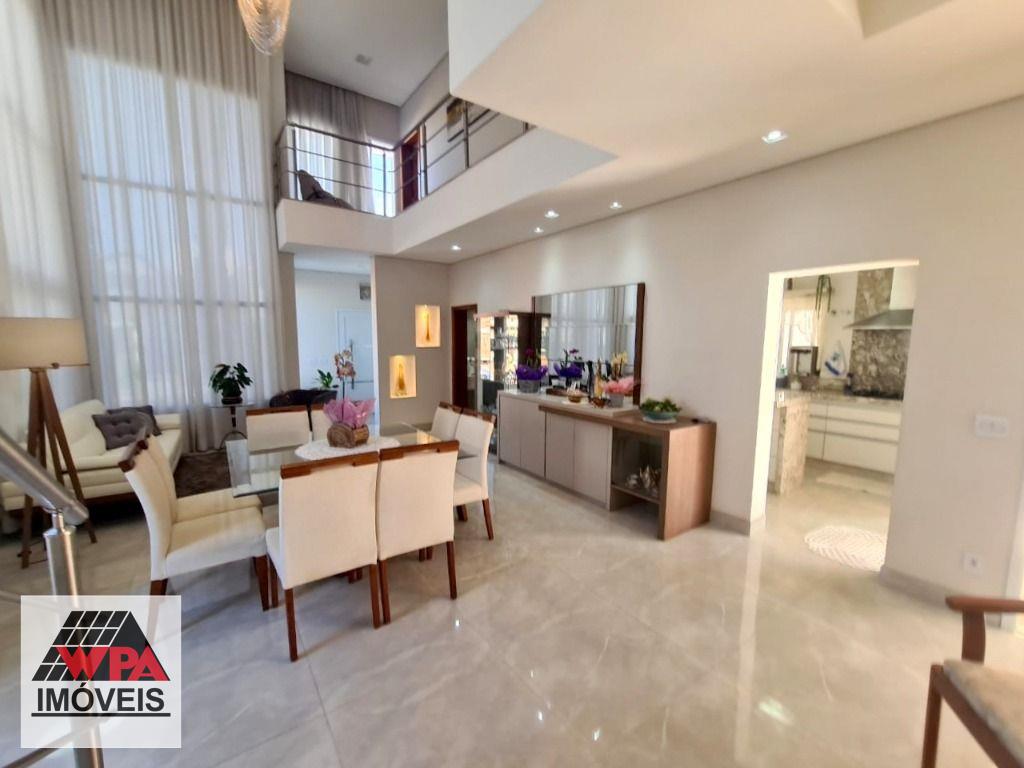 Sobrado de alto padrão em condomínio fechado Villa San Pietro, pavimento superior possui 4 suítes planejadas e sacada, sendo 1 suíte master com closet, pavimento térreo com 1 suíte, salas 2 ambientes com pé direito duplo e home theater, cozinha planejada, área de serviço com armários, quintal com ótimo espaço gourmet e piscina aquecida, quarto de despejo, e escritório, 6 vagas de garagem, sendo 3 cobertas. Aceita financiamento com FGTS e estuda permuta até 50% do valor.