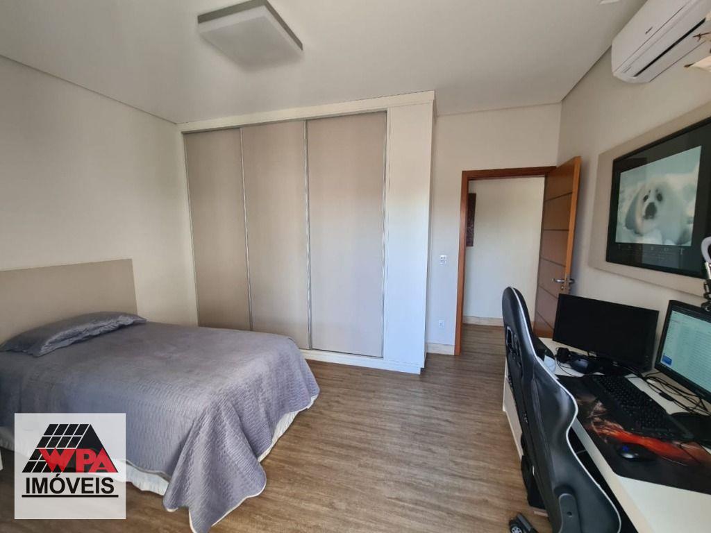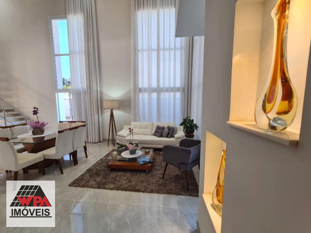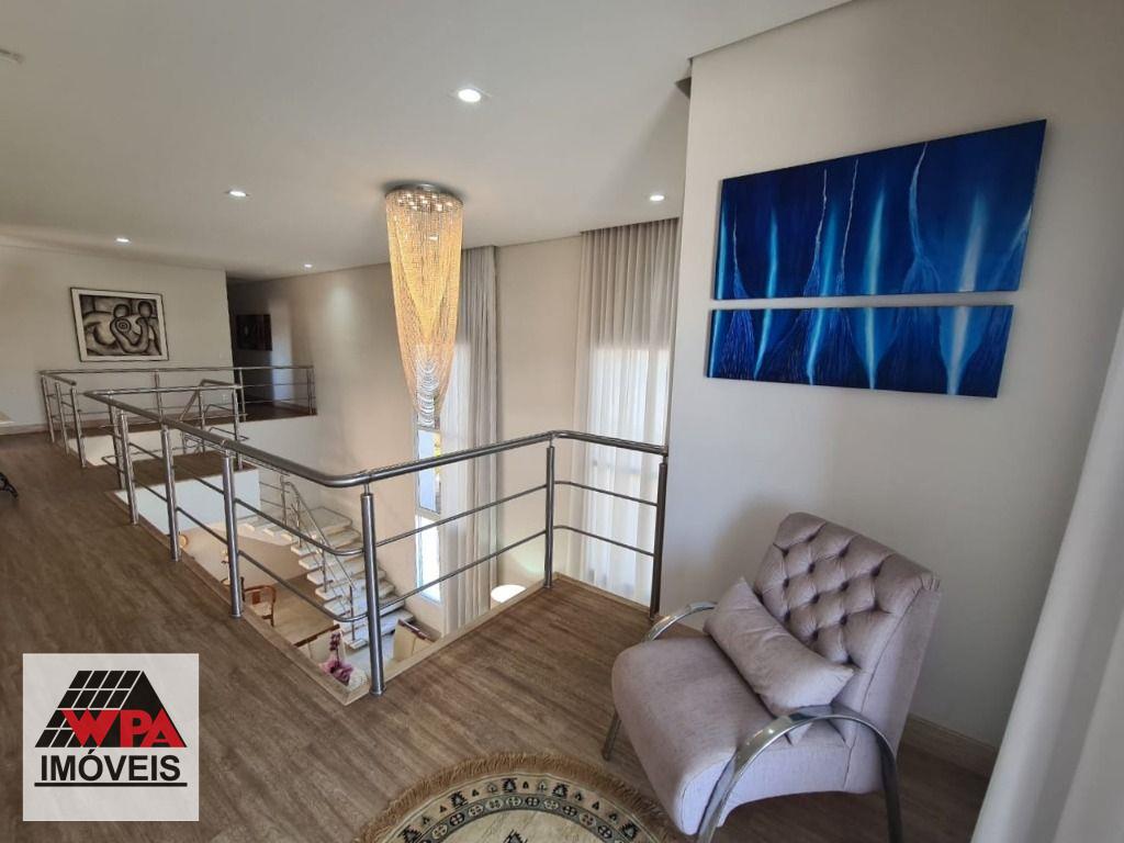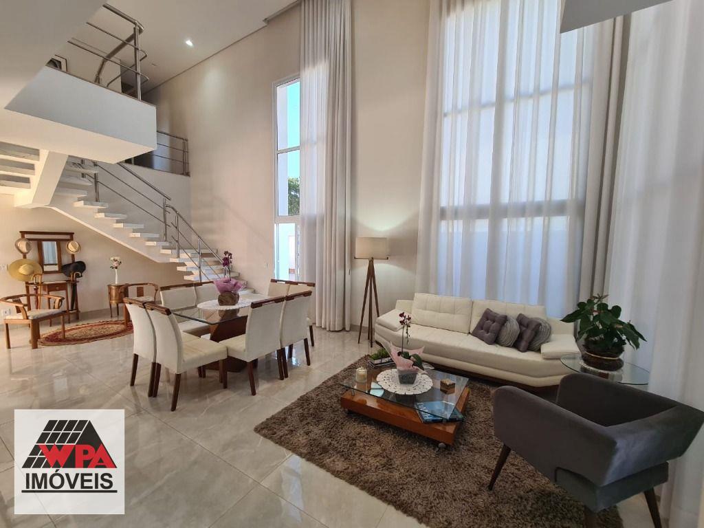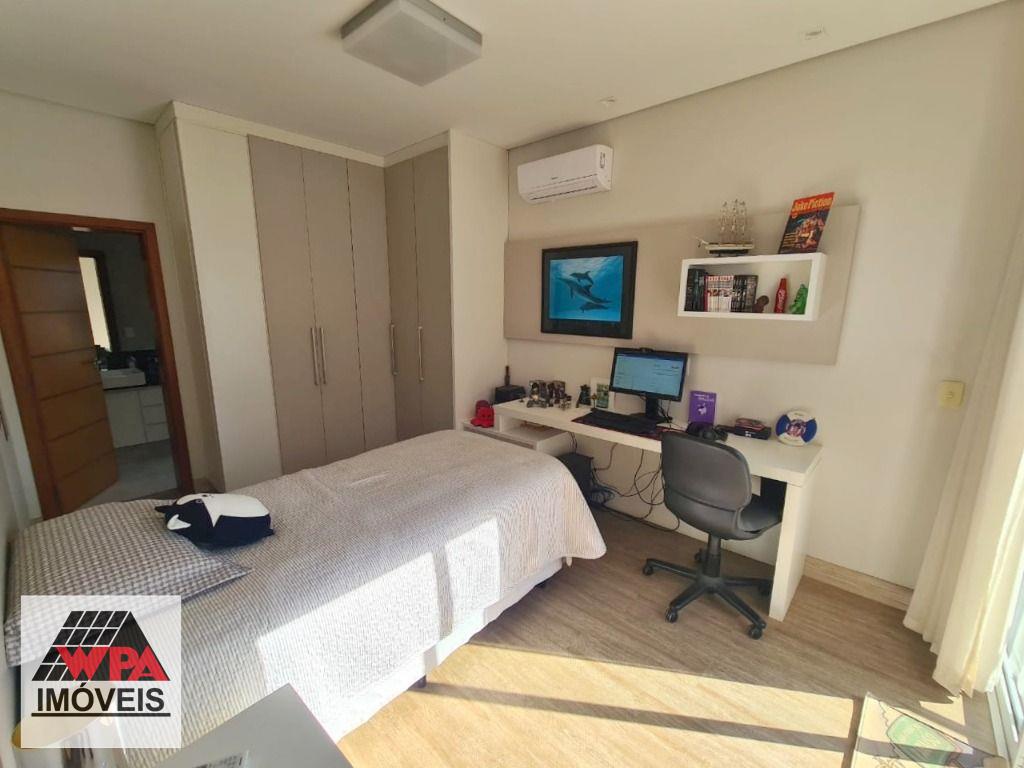Sobrado de alto padrão em condomínio fechado Villa San Pietro, pavimento superior possui 4 suítes planejadas e sacada, sendo 1 suíte master com closet, pavimento térreo com 1 suíte, salas 2 ambientes com pé direito duplo e home theater, cozinha planejada, área de serviço com armários, quintal com ótimo espaço gourmet e piscina aquecida, quarto de despejo, e escritório, 6 vagas de garagem, sendo 3 cobertas. Aceita financiamento com FGTS e estuda permuta até 50% do valor.