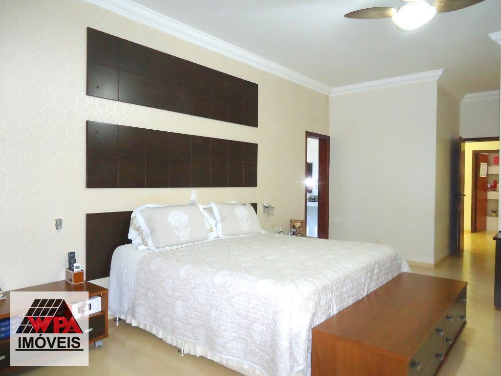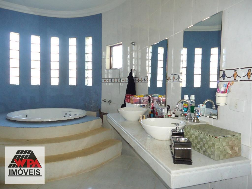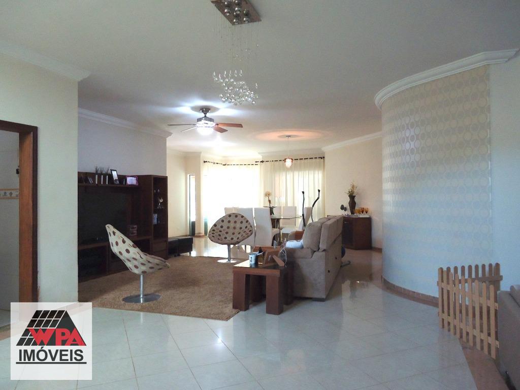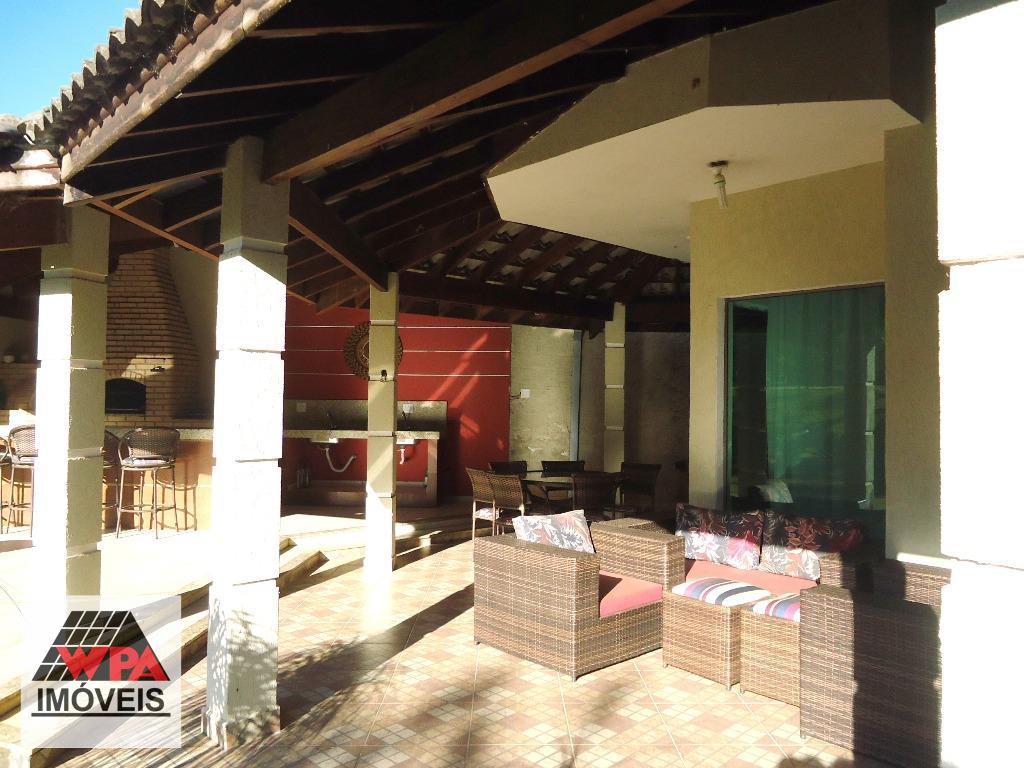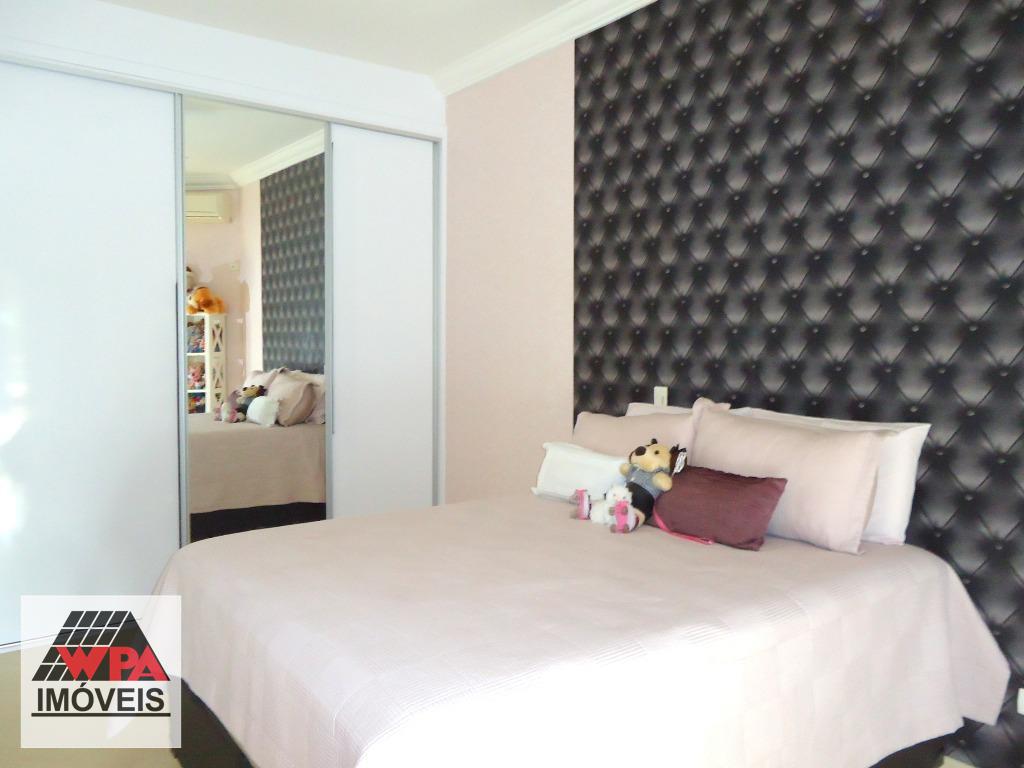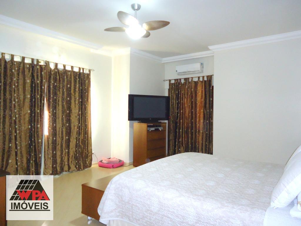 Sobrado residencial com 4 suítes com sacada (sendo 3 com ar condicionado, 1 com hidro e 2 com closet), ampla sala com 3 ambientes (lareira/jantar/estar), escritório com lavabo, cozinha planejada, lareira, escritório com banheiro social, lavabo, área de serviço com banheiro e quarto, amplo quintal possui espaço gourmet com churrasqueira, piscina, 2 vagas de garagem cobertas. Aceita permuta com imóveis até 50% do valor.