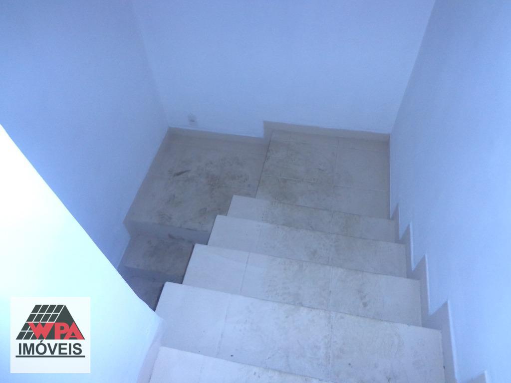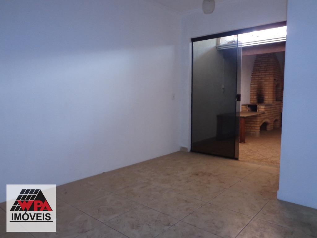 Sobrado residencial com 68m² de construção, pavimento superior com 2 dormitórios, sendo 1 com armário e sacada, banheiro social, térreo com sala de estar, cozinha, lavabo, área de serviço, nos fundos possui churrasqueira e forno de pizza, 1 vaga de garagem coberta.