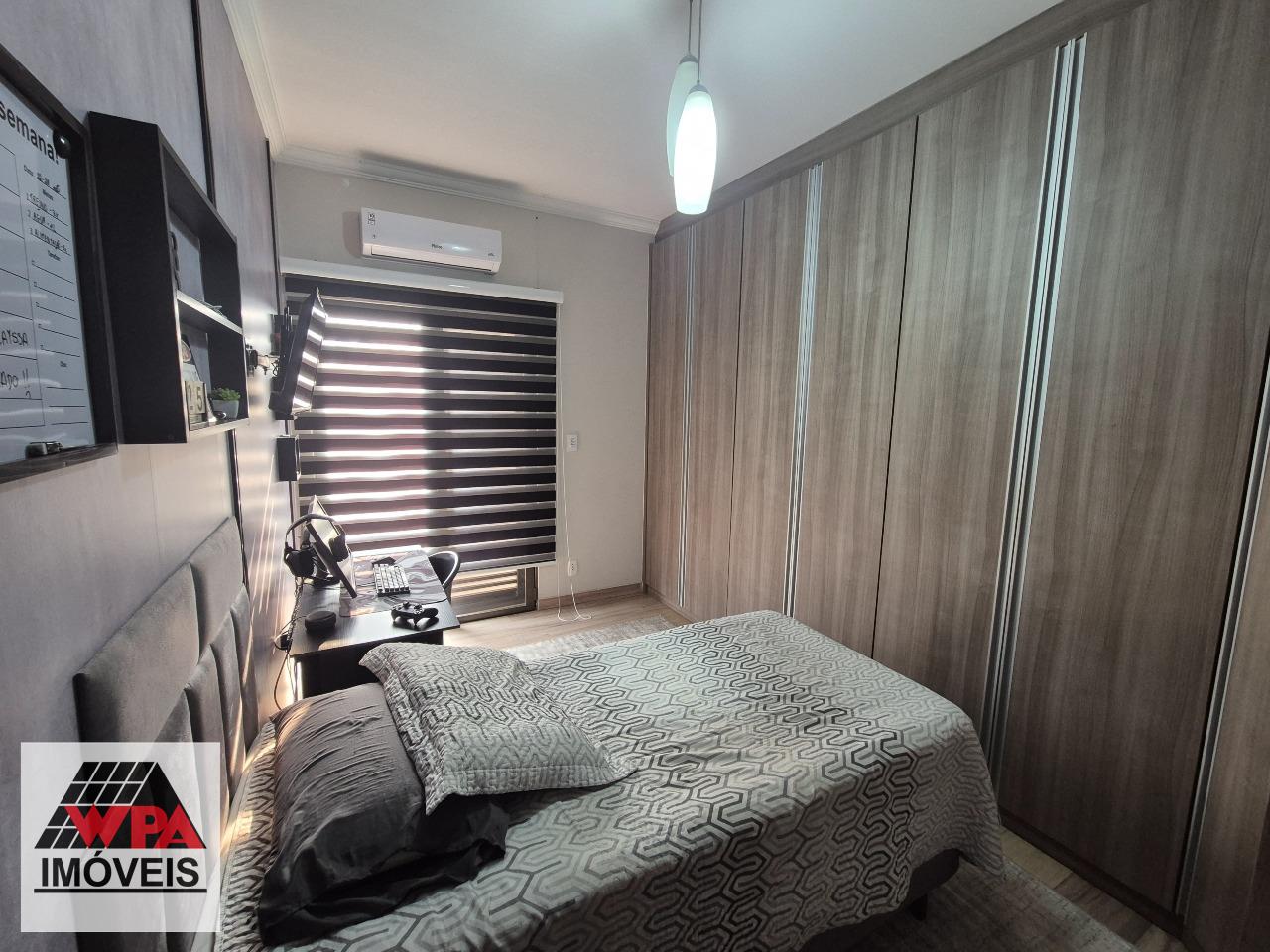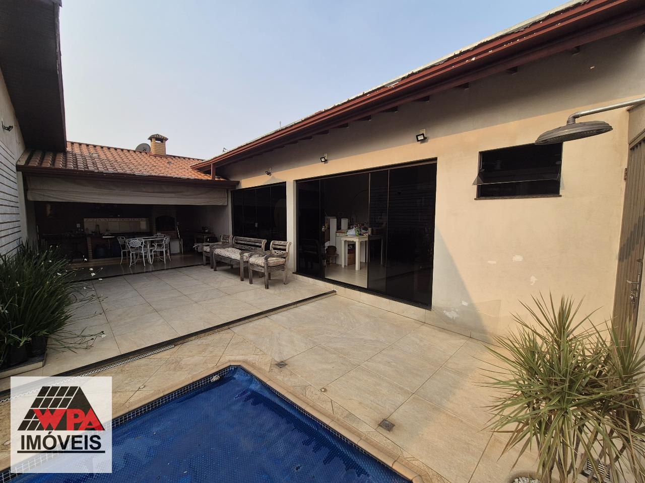 Casa residencial com 3 dormitórios com armários sendo 1 suíte(2 dormitórios c/ porta balcão e sacada), sala 2 ambientes integradas com cozinha com armários, lavabo, hall de entrada, área de serviço, espaço gourmet com churrasqueira e piscina com entrada independente, 2 vagas de garagem cobertas. Aceita financiamento e estuda permuta com casa no bairro Jardim Souza Queiroz.
