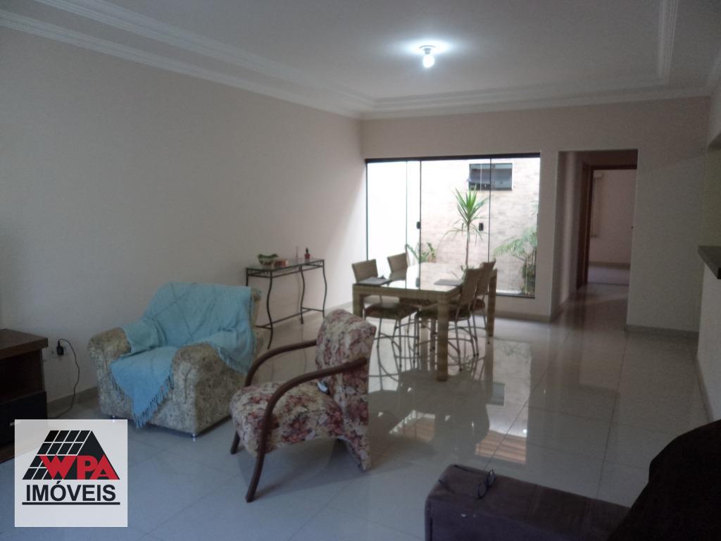 Casa residencial térrea com 206,45m² possui 3 dormitórios, sendo 1 suíte, sala 3 ambientes com área de luz, cozinha planejada, banheiro social, área de serviço, espaço gourmet com churrasqueira e banheiro social, quintal, 3 vagas de garagem, sendo 2 cobertas. Aceita financiamento e estuda permuta com imóvel até R$400.000,00.