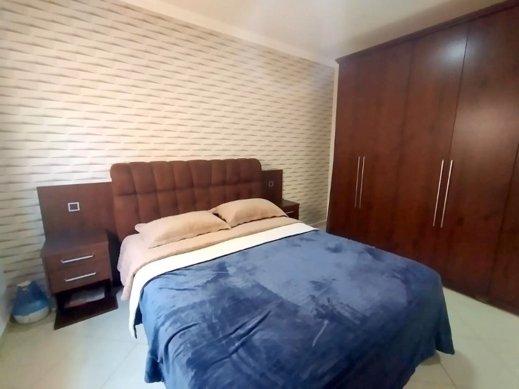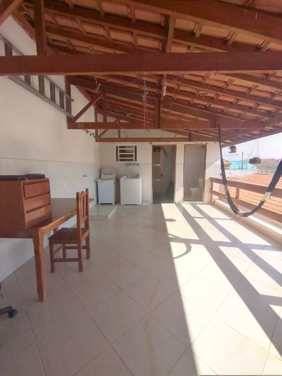 Possui 3 dormitórios, sendo 1 suíte, sala dois ambientes, cozinha e banheiro social. No pavimento superior, contém área de serviço, banheiro, despensa e amplo espaço. Oferece 2 vagas de garagem cobertas.