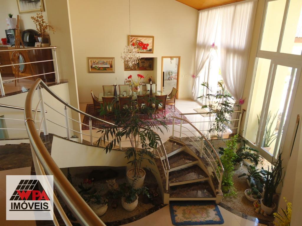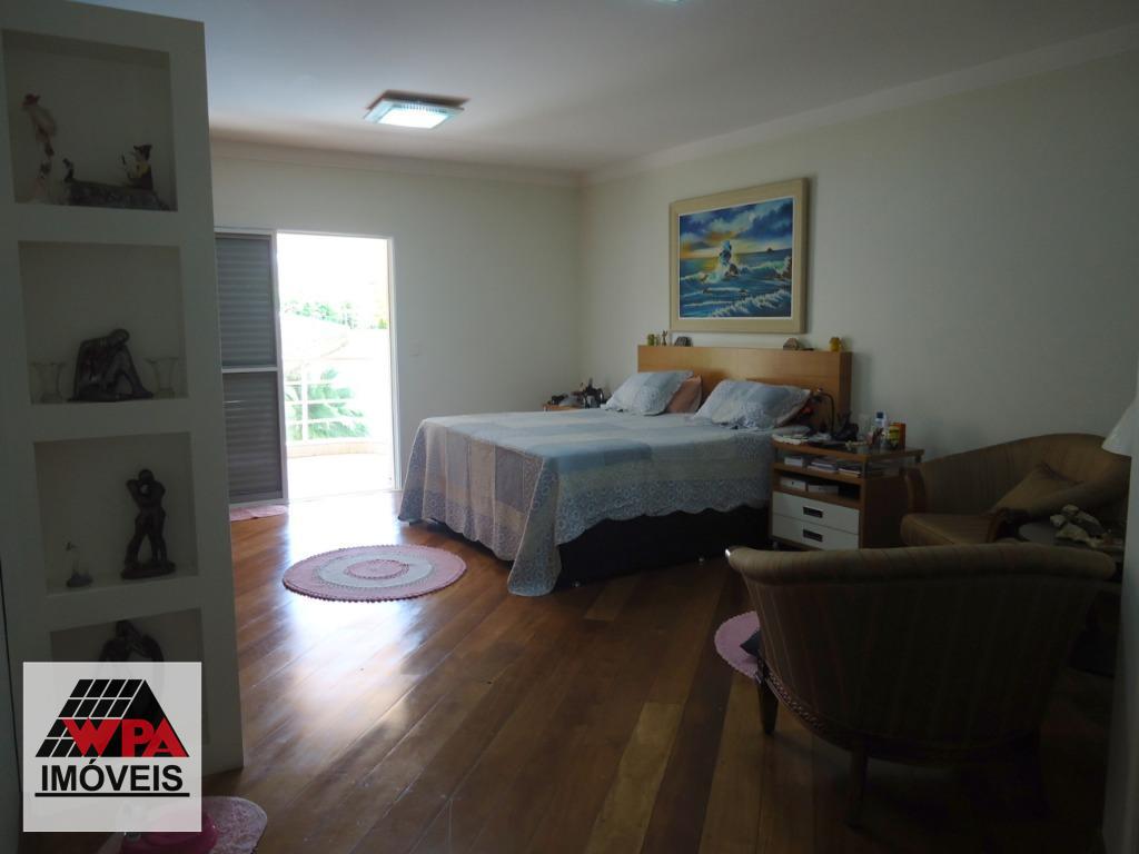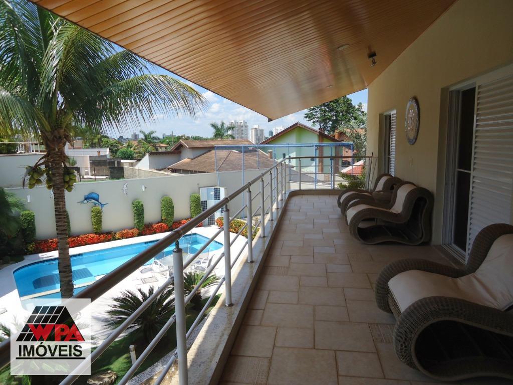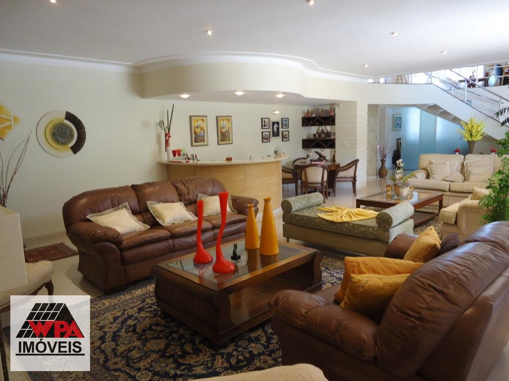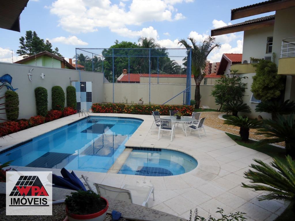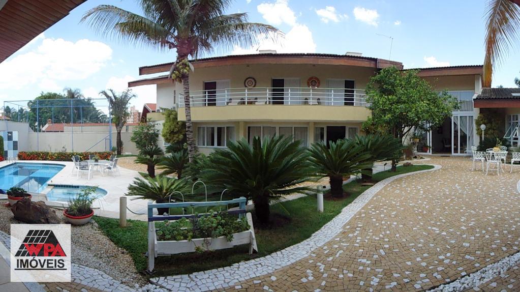 Sobrado residencial de alto padrão em bairro nobre, imóvel possui no pavimento superior 5 suítes com varandas sendo 1 suíte master com closet, ar-condicionado e banheira de hidromassagem dupla, 2 com closet, ar-condicionado e banheira de hidromassagem, 1 com 2 dormitórios conjugados e ar-condicionado, possui também sala intima e atelie, pavimento térreo com sala multi-ambientes com vista para a área de lazer (sala de visitas com 2 ambientes e lareira, home theater com ar-condicionado, projeto e telão, sala de estudos e sala de jogos com ar-condicionado, sala de almoço, sala de jantar), cozinha com móveis planejados "Kitchens", despensa, escritório com ar-condicionado, lavabo, área de serviço com armários e entrada de serviço, suíte de empregada, despejo com armário, área de lazer completa com churrasqueira, fogão e forno à lenha, sala fitness, piscina 9mx4,5m com spa e hidromassagem, mini quadra de esportes, possui poço artesiano com vazão de 4,5m³/dia, câmeras de vigilância, alarme monitorado, central telefônica com ramais, sistema de aquecedor solar com 2 boiler de 600lts para toda residencia, possui 10 vagas de garagem, sendo 4 cobertas e portão eletrônico. Aceita permuta até 30% do valor.