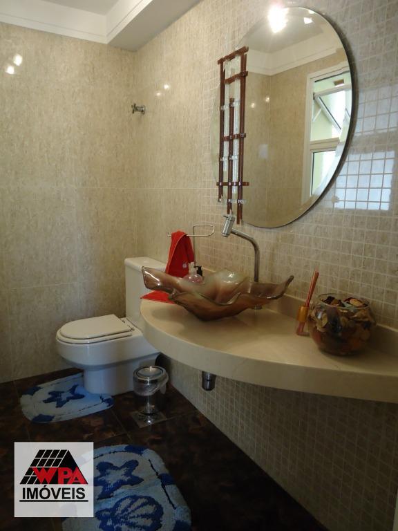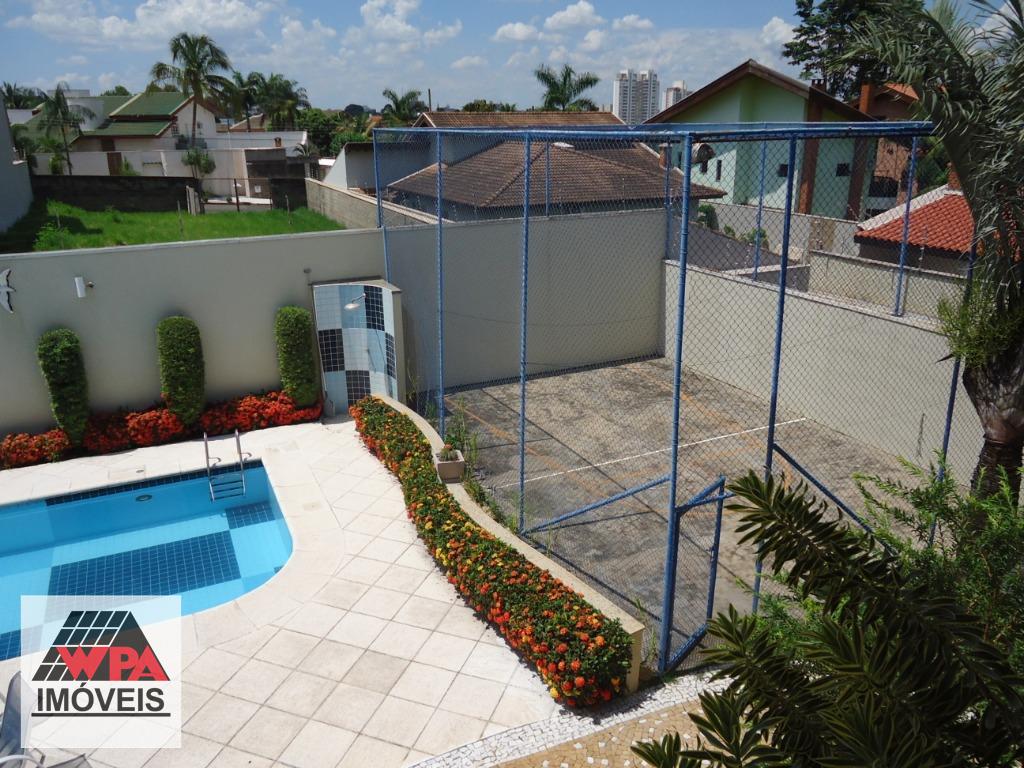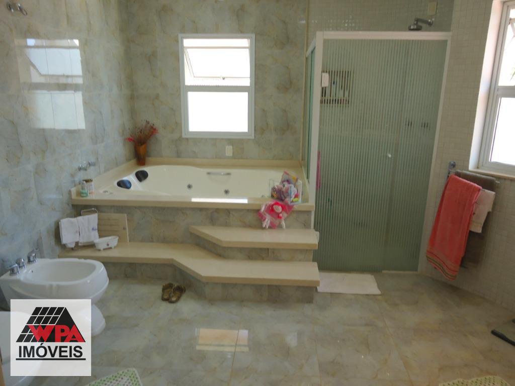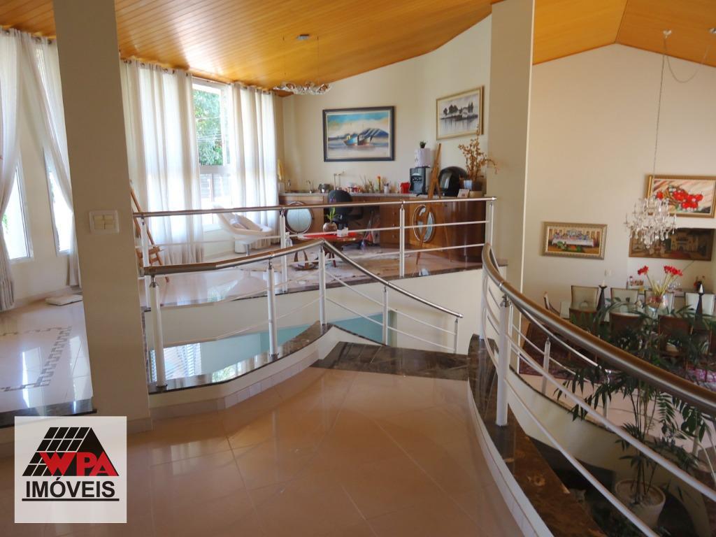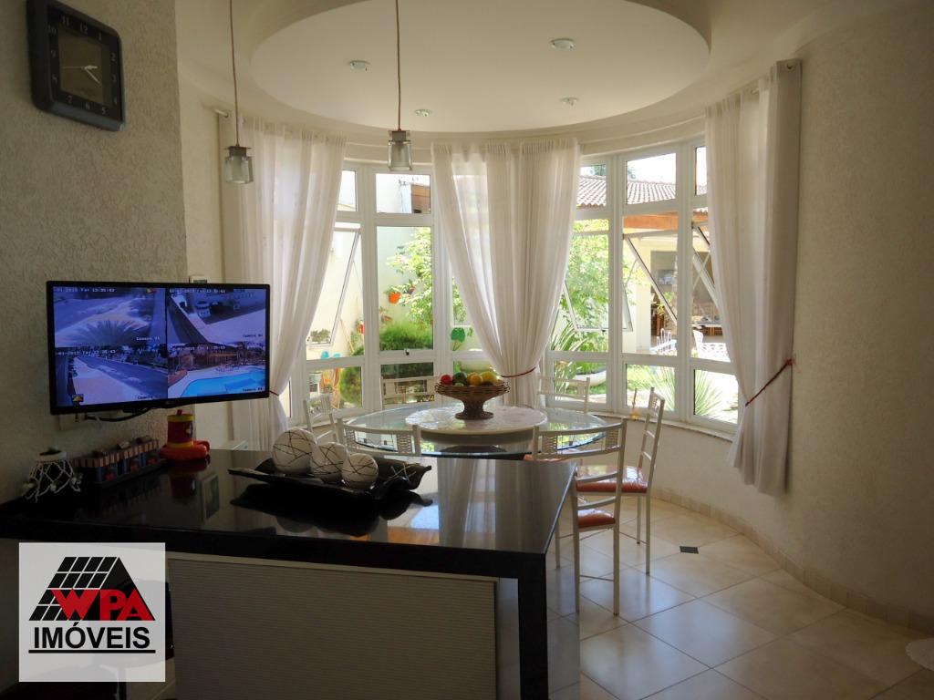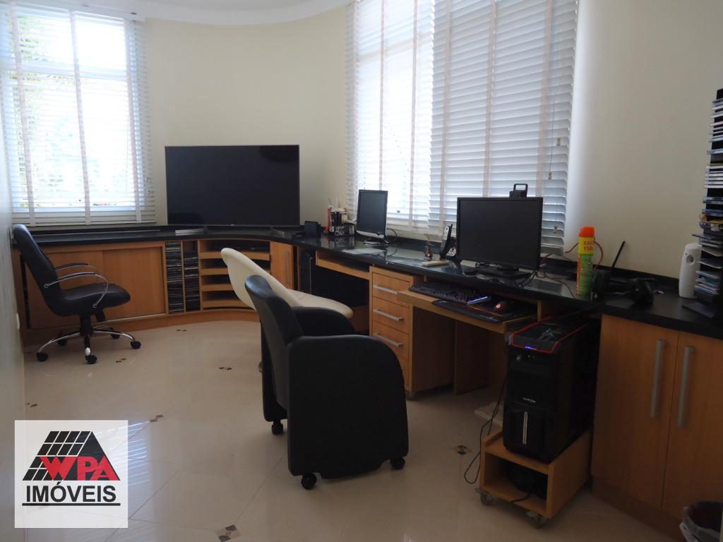 Sobrado residencial de alto padrão em bairro nobre, imóvel possui no pavimento superior 5 suítes com varandas sendo 1 suíte master com closet, ar-condicionado e banheira de hidromassagem dupla, 2 com closet, ar-condicionado e banheira de hidromassagem, 1 com 2 dormitórios conjugados e ar-condicionado, possui também sala intima e atelie, pavimento térreo com sala multi-ambientes com vista para a área de lazer (sala de visitas com 2 ambientes e lareira, home theater com ar-condicionado, projeto e telão, sala de estudos e sala de jogos com ar-condicionado, sala de almoço, sala de jantar), cozinha com móveis planejados "Kitchens", despensa, escritório com ar-condicionado, lavabo, área de serviço com armários e entrada de serviço, suíte de empregada, despejo com armário, área de lazer completa com churrasqueira, fogão e forno à lenha, sala fitness, piscina 9mx4,5m com spa e hidromassagem, mini quadra de esportes, possui poço artesiano com vazão de 4,5m³/dia, câmeras de vigilância, alarme monitorado, central telefônica com ramais, sistema de aquecedor solar com 2 boiler de 600lts para toda residencia, possui 10 vagas de garagem, sendo 4 cobertas e portão eletrônico. Aceita permuta até 30% do valor.