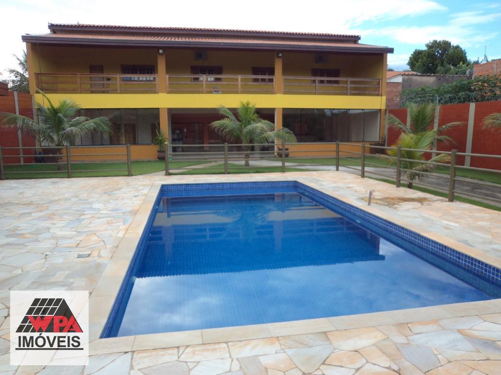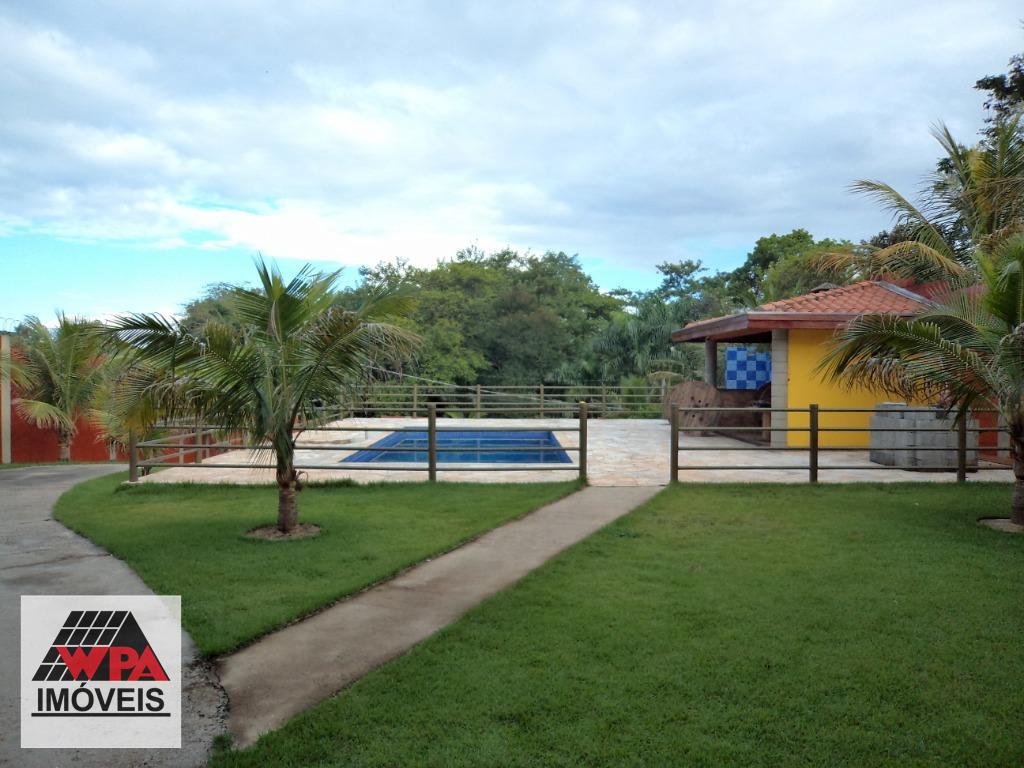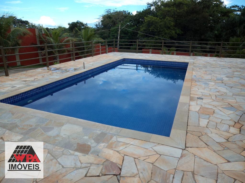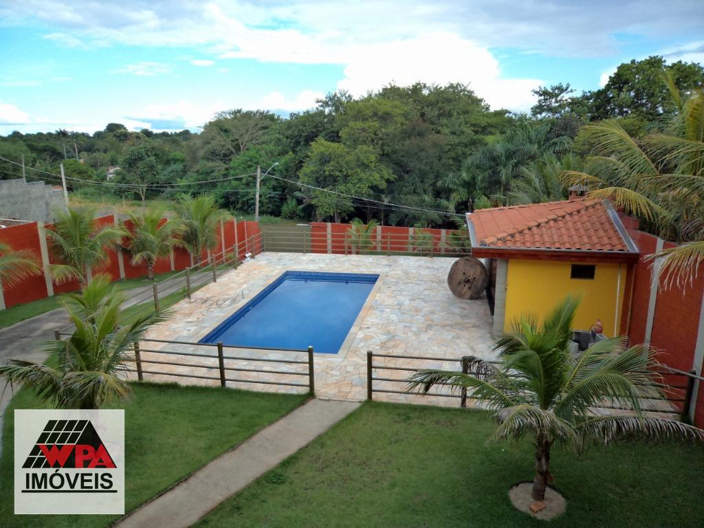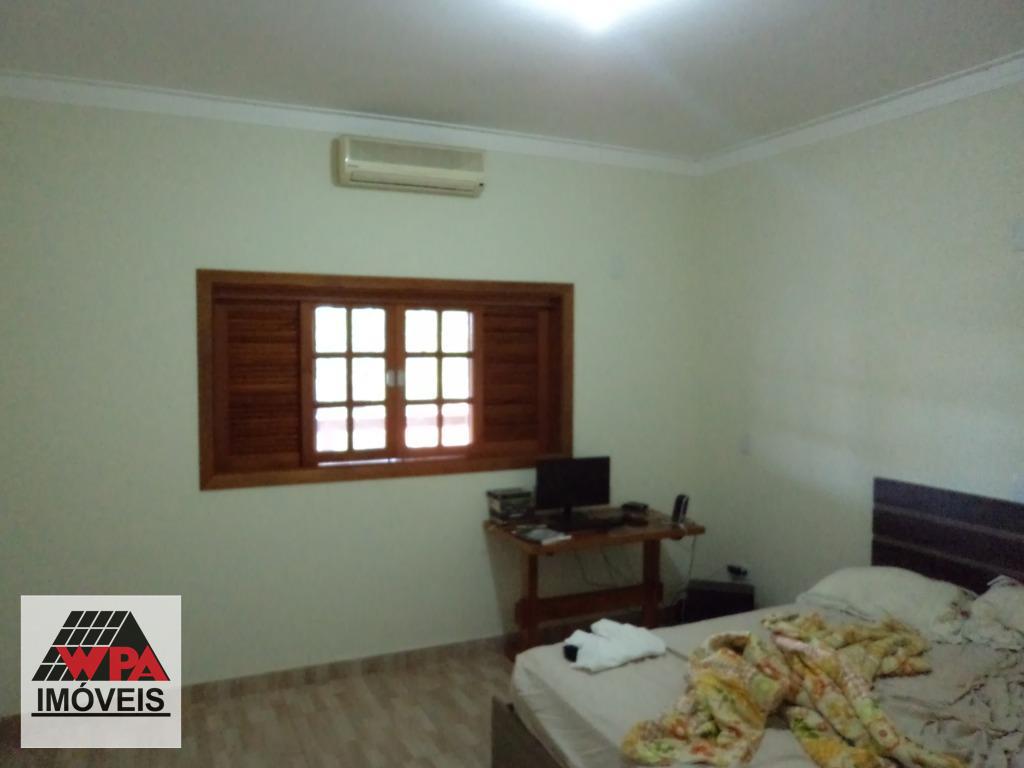 Chácara residencial com 450m² de construção em terreno com 1.003m², pavimento superior com 3 dormitórios amplos, sendo 1 suíte com com armário planejado, ampla sala 2 ambientes com painel de TV, cozinha planejada, banheiro social com gabinete e box, área de serviço, varanda com 80m², pavimento térreo com salão para festa de 180m² com churrasqueira, cozinha, despejo, 2 banheiros sociais, área de lazer com piscina 4x8, churrasqueira, possui cisterna com 17.000lts para água de chuva, belíssimo paisagismo, 10 vagas de garagem. Estuda permuta com imóvel de menor valor.