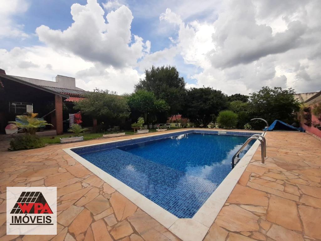 Chácara residencial com 800m² de área total e 200m² de construção, possui 2 dormitórios, sala de estar, cozinha, 2 banheiros sociais, área de serviço, depósito, área de lazer com churrasqueira, piscina e quintal, 6 vagas de garagem, sendo 2 cobertas. Aceita financiamento e permuta de menor valor.