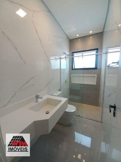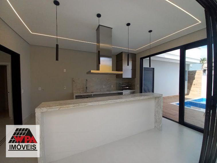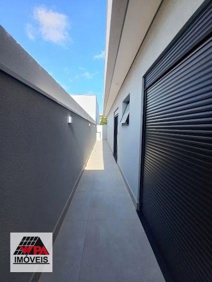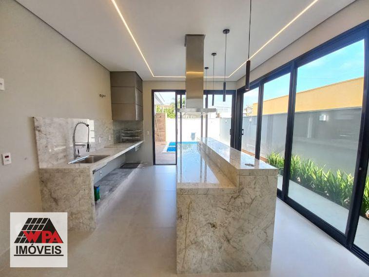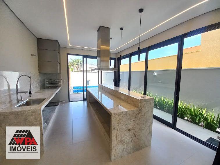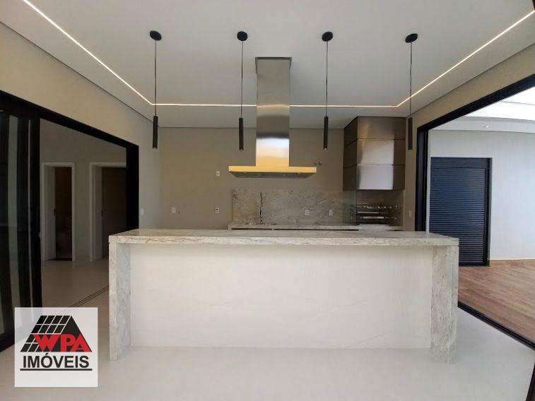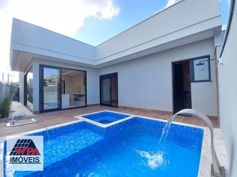 Casa residencial térrea com construção moderna e integrada com 177m² de área construída no condomínio fechado Residencial Imigrantes em Nova Odessa, possui 3 dormitórios com janelas automatizadas, sendo 1 suíte com closet, sala 2 ambientes com pé direito duplo, cozinha gourmet com churrasqueira de inox e coifa com ilha, banheiro social, lavabo, área de serviço, área de lazer com piscina, hidro e cascata, ducha e banheiro externo, 4 vagas de garagem, sendo 2 cobertas, imóvel com aquecimento solar com boiler, boiler de 600 litros, preparação para ar-condicionado e 2 caixas de água, condomínio com portaria 24hrs, salão de festas, quadra esportivas e churrasqueira. Aceita financiamento com FGTS e permuta com carro ou terreno.
