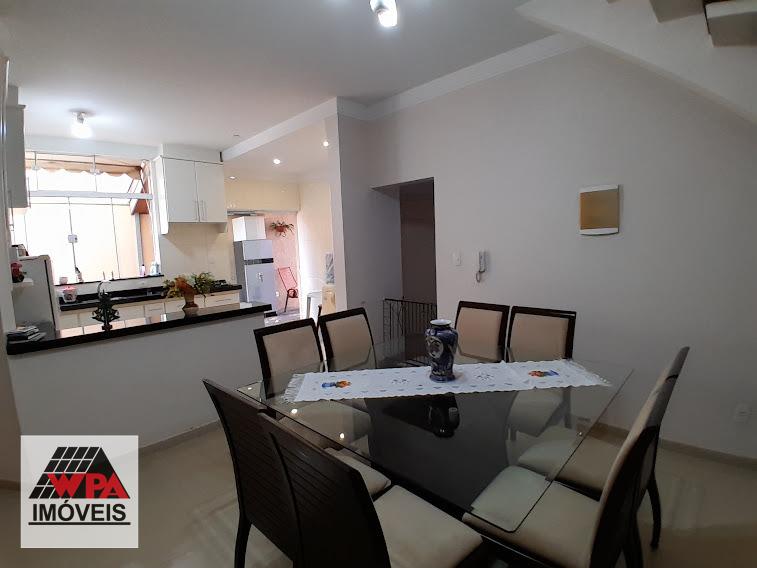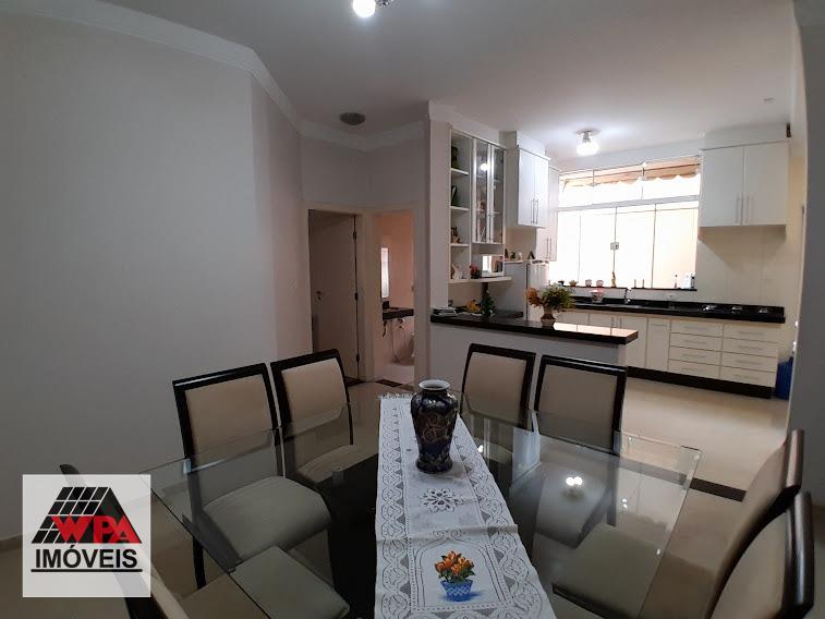 Excelente casa residencial com 263m² de área construída, localizada no Jardim Dona Regina. Na superior, possui uma sala de estar com sacada, banheiro social e 2 amplos dormitórios com ar condicionado e sacada. O pavimento térreo é constituído por 1 suíte, sala de TV, sala de jantar, cozinha com armários e banheiro social. Nos fundos, contém lavanderia, 1 quarto de despejo, banheiro, espaço gourmet com churrasqueira e quintal. Além disso, o imóvel conta com 3 vagas de garagem sendo 1 coberta e energia fotovoltaica. Estuda permuta com casa de menor valor.